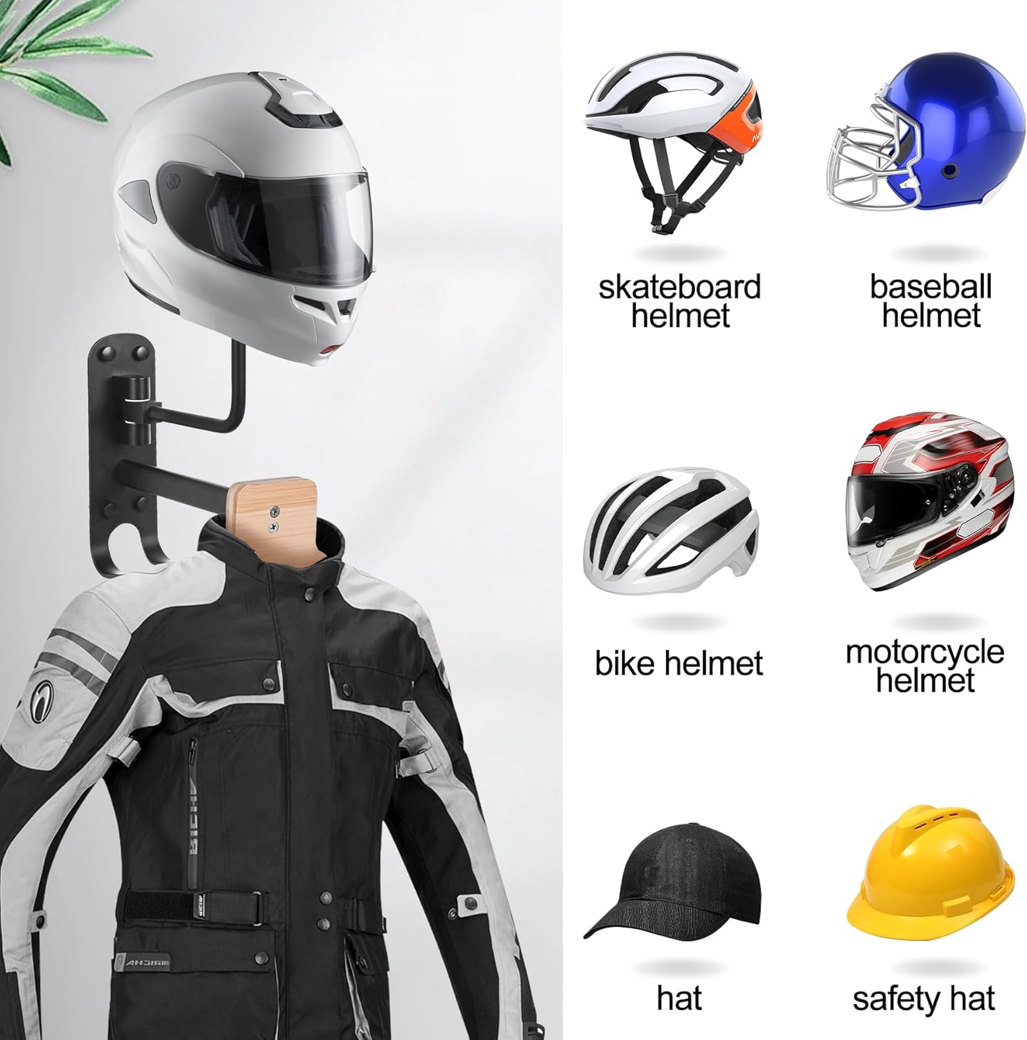 | Included Components | motorcycle helmet rack wall mount, clothes hanger, expansion pipes, screw caps |